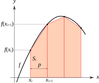 - ROC curve는 위와 같이 구할 수 있다. 그럼 이의 넓이: AUC 값은 어떻게 구할까? 보통, 곡선 아래 넓이는 trapezoidal rule을 통해 구한다. 고등학교 때 배운 적분을 떠올리면 된다. 수많은 사다리꼴로 쪼개어 넓이를 근사하던 기억을 되살려 보자.