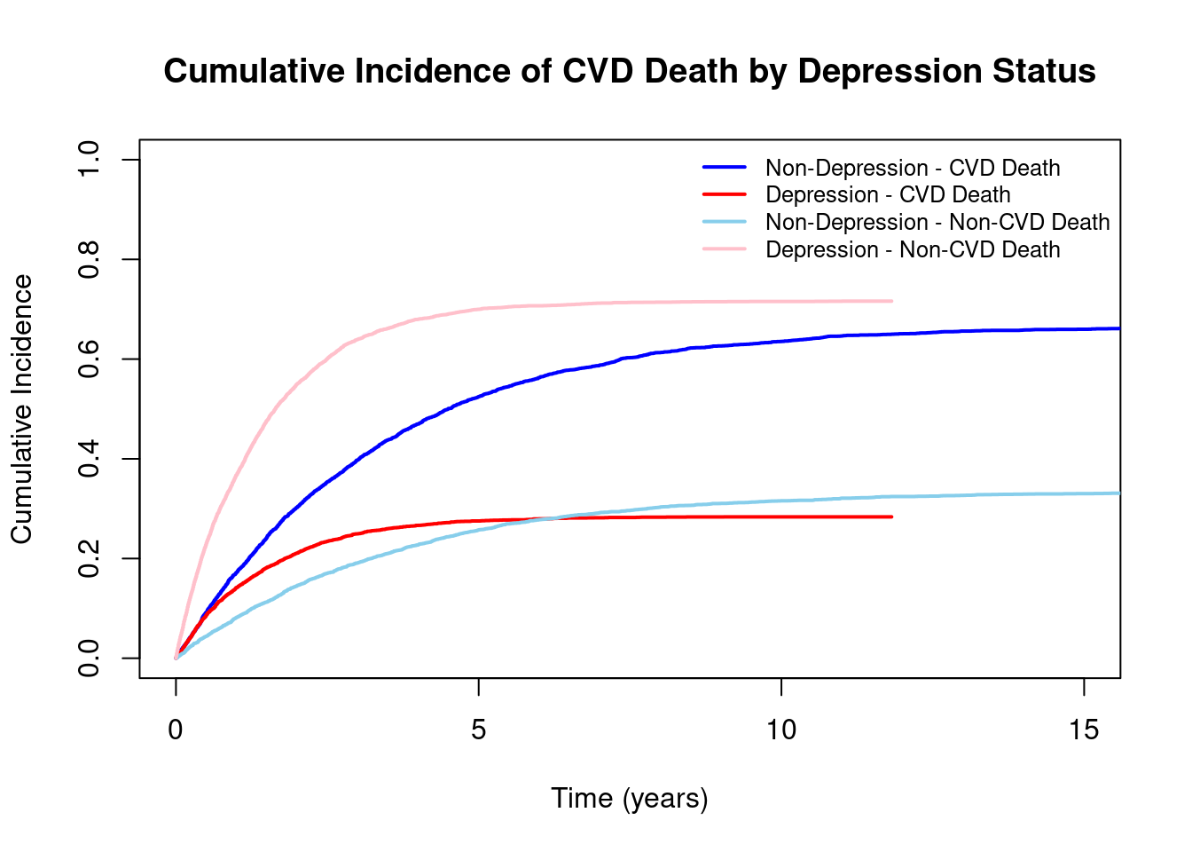 legend = c("Non-Depression - CVD Death", "Depression - CVD Death",